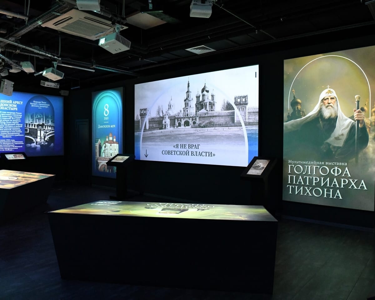 С помощью современных технологий — интерактивных экранов, видеомэппинга, компьютерной графики и уникальных архивных материалов — выставка рассказывает о жизненном пути и духовном подвиге Патриарха Тихона.