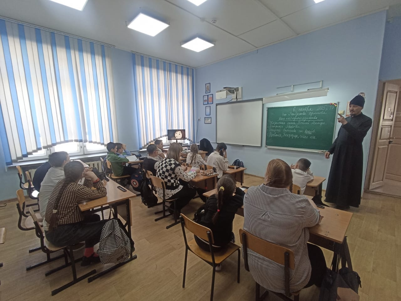 6 ноября помощник благочинного по работе со школами, катехизатор Алексей Евдокимов провел уроки по Основам православной культуры в 5 и 6 классах С(К)Ш 1. Тема урока "День народного единства". Уроки ведутся по учебнику протоиерея Бориса Пивоварова.