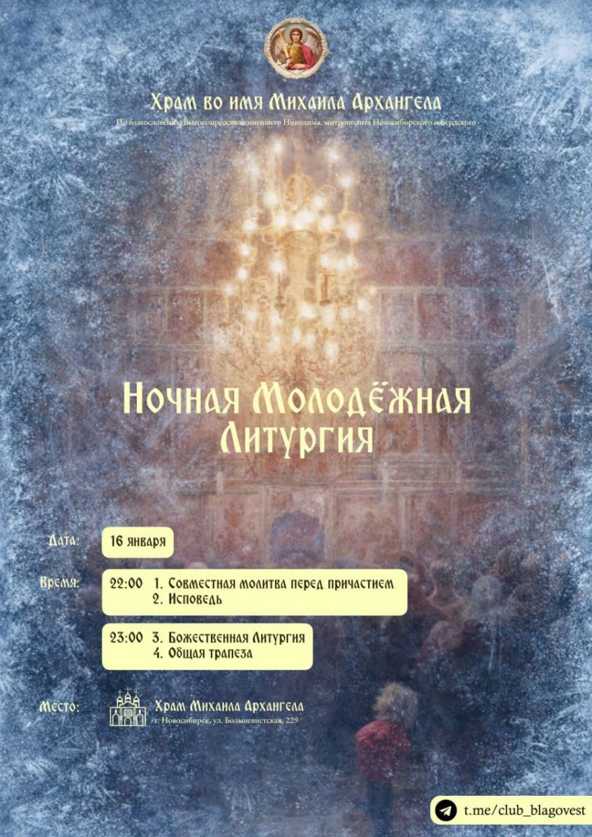 Которая состоится 16 января в 22:00 в храме во имя Михаила Архангела.