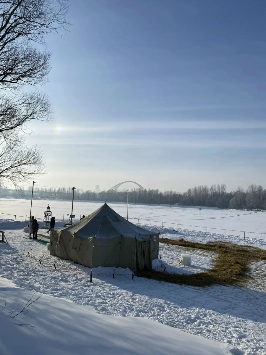 На месте были организованы все условия для подвижников, палатки для переодевания, а также горячий чай из самоваров и угощения.