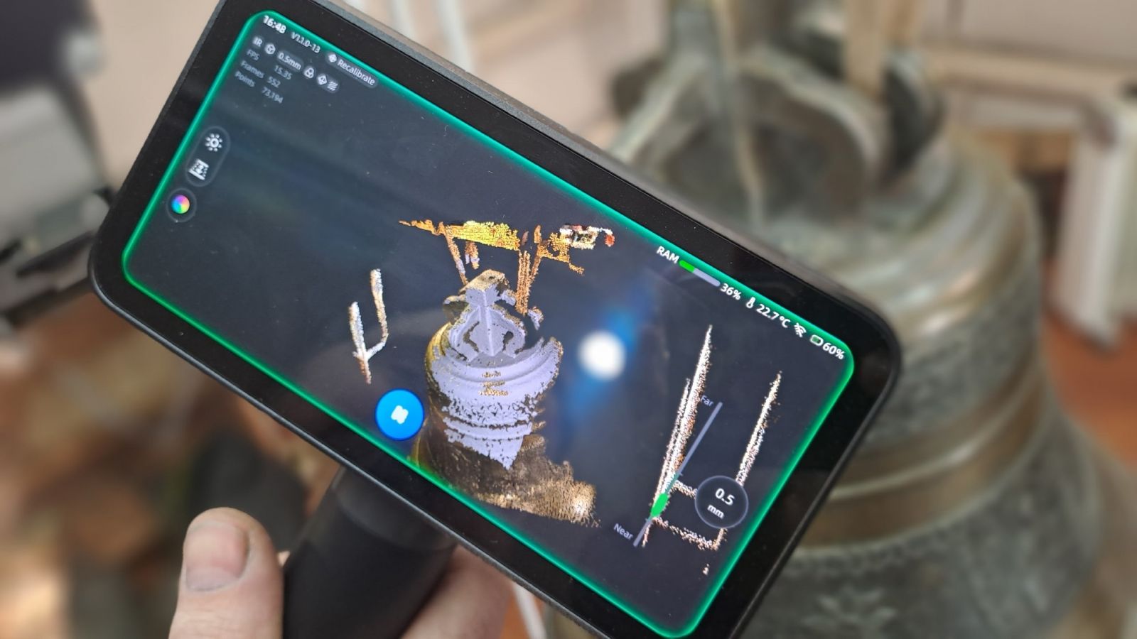 В минувшее воскресенье мы работали над получением 3D копии самого крупного из экспонатов нашего Музея колокольного звона - колокола, отлитого в 1904 году в Тюмени на заводе "Петра Ивановича Гилева сыновей". Колокол весит 10 пудов и 20 фунтов, богато украшен орнаментами, иконными изображениями и надписями. Сканирование такого достаточно большого объекта представляет определенные трудности, и мы с ними столкнулись напрямую.