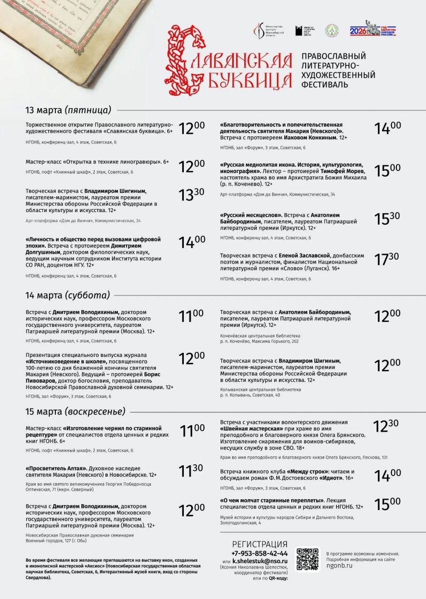 Дорогие братья и сестры, 13 марта в 12:00 в Новосибирской государственной областной научной библиотеке (ул. Советская 6, конференц-зал, 4 этаж) состоится главное мероприятие в рамках празднования Дня православной книги, открытие VIl Православного литературно-художественного фестиваля «Славянская Буквица».