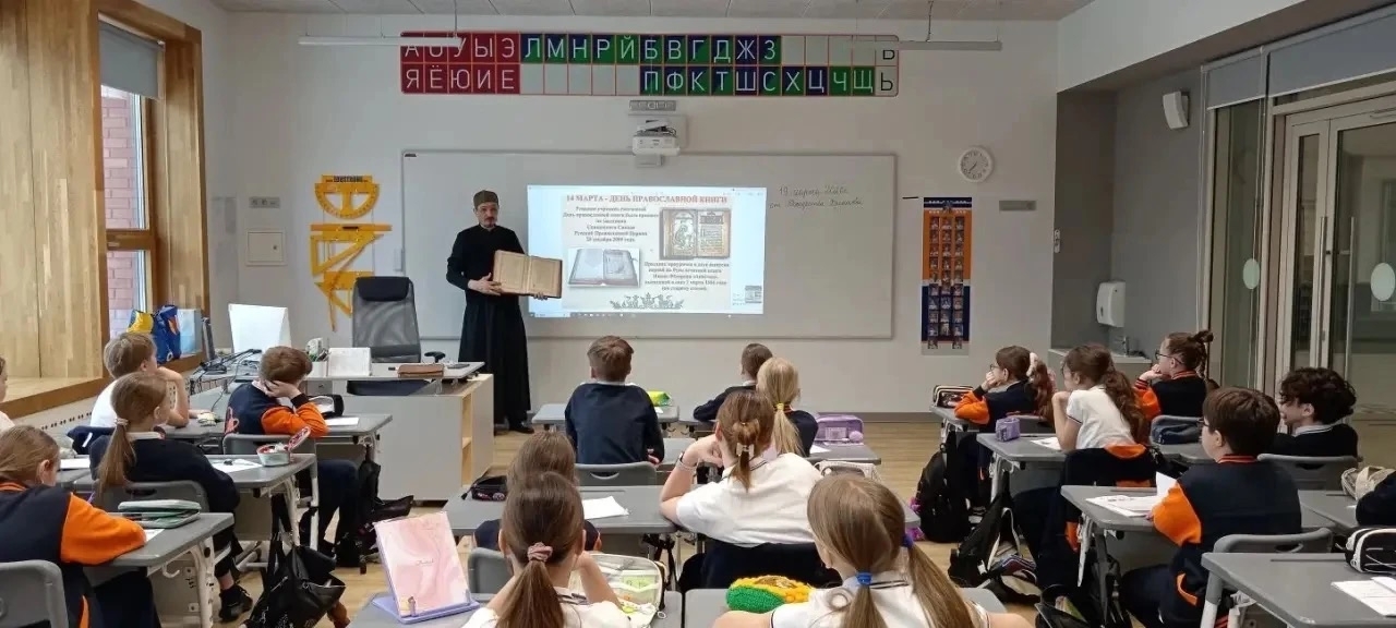 19 марта Катехизатор храма Михаила Архангела Алексей Евдокимов провел в 4-х классах СОШ 206 мероприятие, посвящённое Дню православной книги.