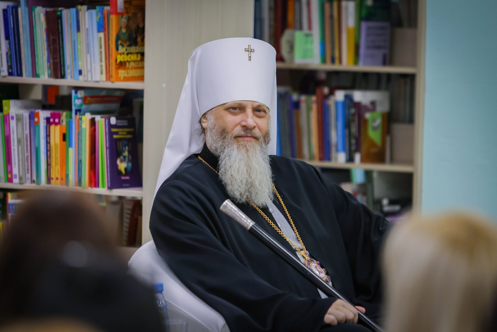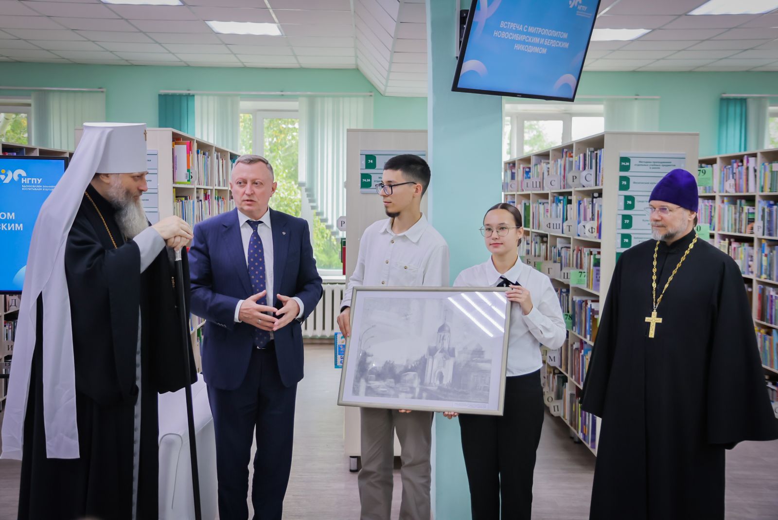 Владыка также принял участие во встрече со студентами и преподавателями НГПУ в читальном зале имени К.Д. Ушинского библиотеки НГПУ, в качестве модератора разговора выступил и.о. ректора НГПУ Сергей Александрович Нелюбов.