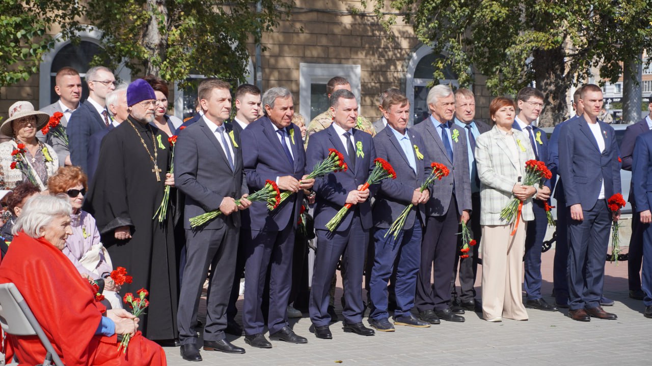 В мероприятии приняли участие ветераны, мэр города Максим Георгиевич Кудрявцев, глава района Фёдор Васильевич Каравайцев, почетный гость Владимир Филиппович Городецкий, по благословению митрополита Новосибирского и Бердского Никодима благочинный 2-го Градского благочиния иерей Игорь Морозов, председатель совета ветеранов Виктор Васильевич Леонов, курсанты и жители города.
