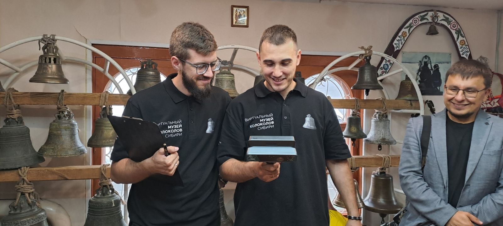 В Новосибирском Музее колокольного звона, действующем при Сибирском центре колокольного искусства, прошли последние приготовления перед первой экспедицией в рамках проекта "Виртуальный музей колоколов Сибири. Мультимедийная энциклопедия". Проект храма во имя Михаила Архангела поддержал Президентский фонд культурных инициатив. Подготовка заняла несколько месяцев, и теперь мы отправляемся в Якутию, где будут исследованы колокола дореволюционного литья. Сегодня прошла первая встреча с нашим информационным партнёром - телекомпанией ОТС.