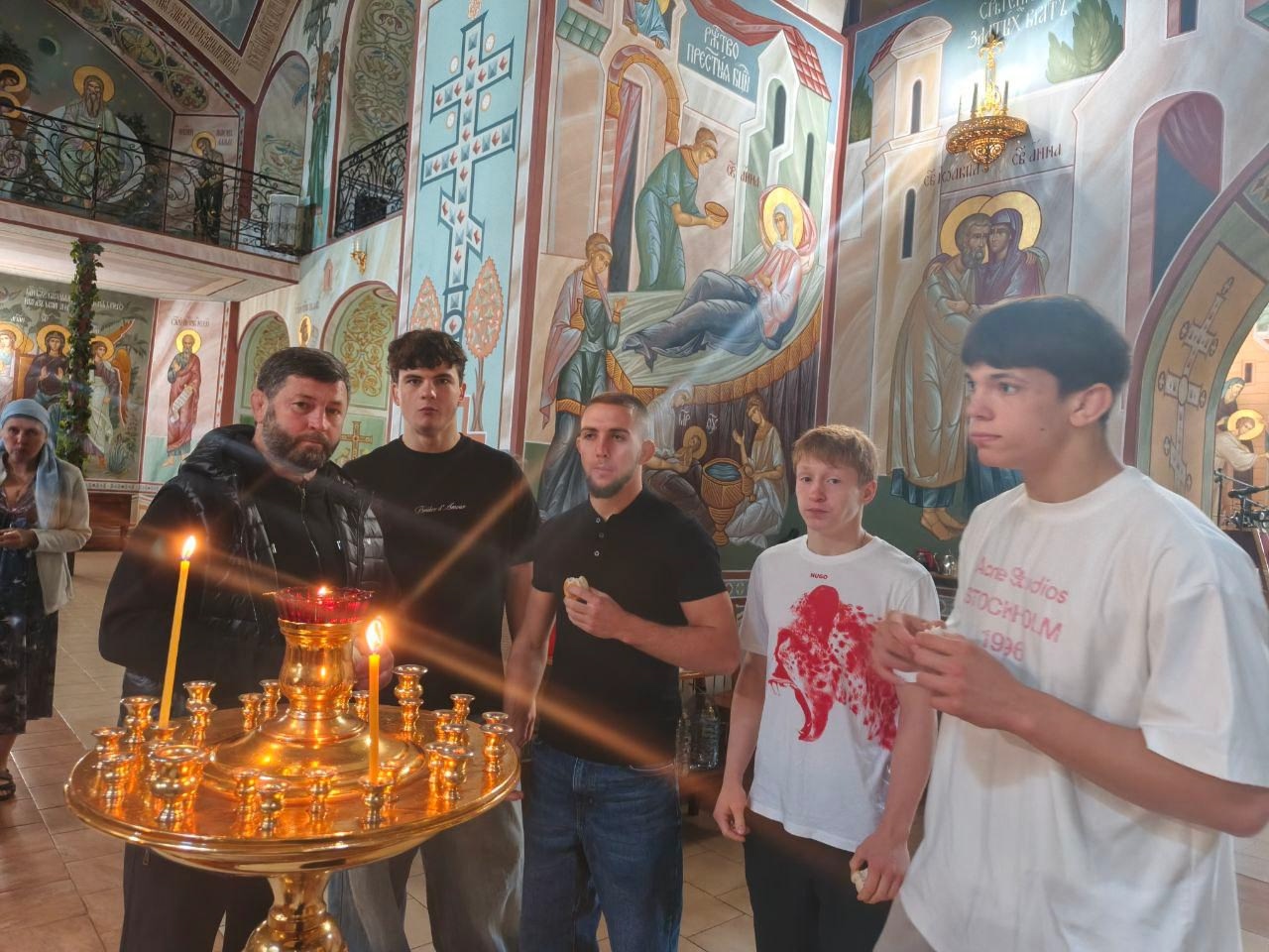 Почетный староста храма Михаила Архангела Лисица Андрей Юрьевич, мастер спорта международного класса по Греко-римской борьбе, тренер сборной команды России среди юниоров и юные спортсмены посетили Спасо-Влахернский монастырь. Игумения матушка Александра встретила гостей, вместе помолились, читали акафист святому преподобномученику Ефрему новому неа-макрийскому чудотворцу.