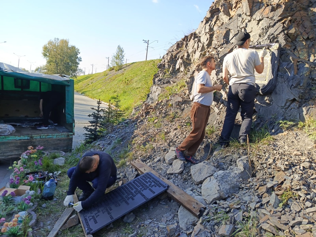На прошлой неделе братьями был проведен демонтаж и реставрация плит с именами благотворителей, участвующих в изготовление Поклонного Креста и благоустройстве территории.