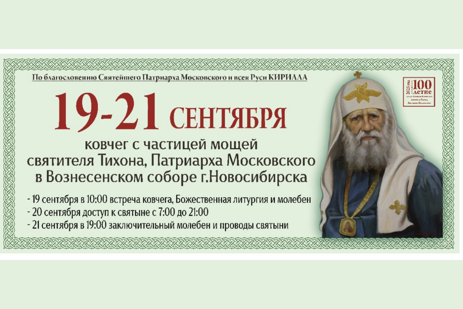 По благословению Святейшего Патриарха Кирилла совершается принесение ковчега с мощами святителя Тихона, Патриарха Московского, в города России и Белоруссии. В Новосибирске ковчег будет пребывать с 19 по 21 сентября.