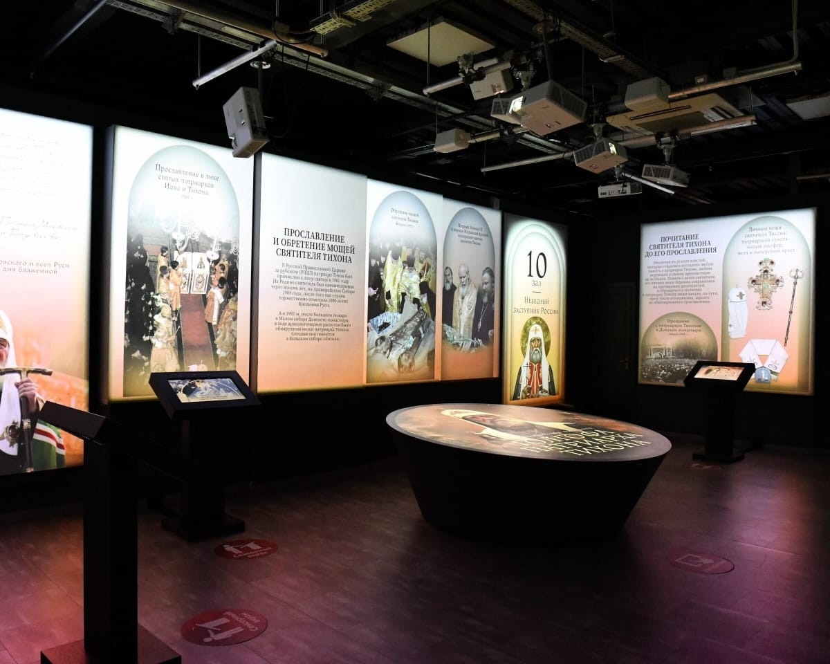 С помощью современных технологий — интерактивных экранов, видеомэппинга, компьютерной графики и уникальных архивных материалов — выставка рассказывает о жизненном пути и духовном подвиге Патриарха Тихона.