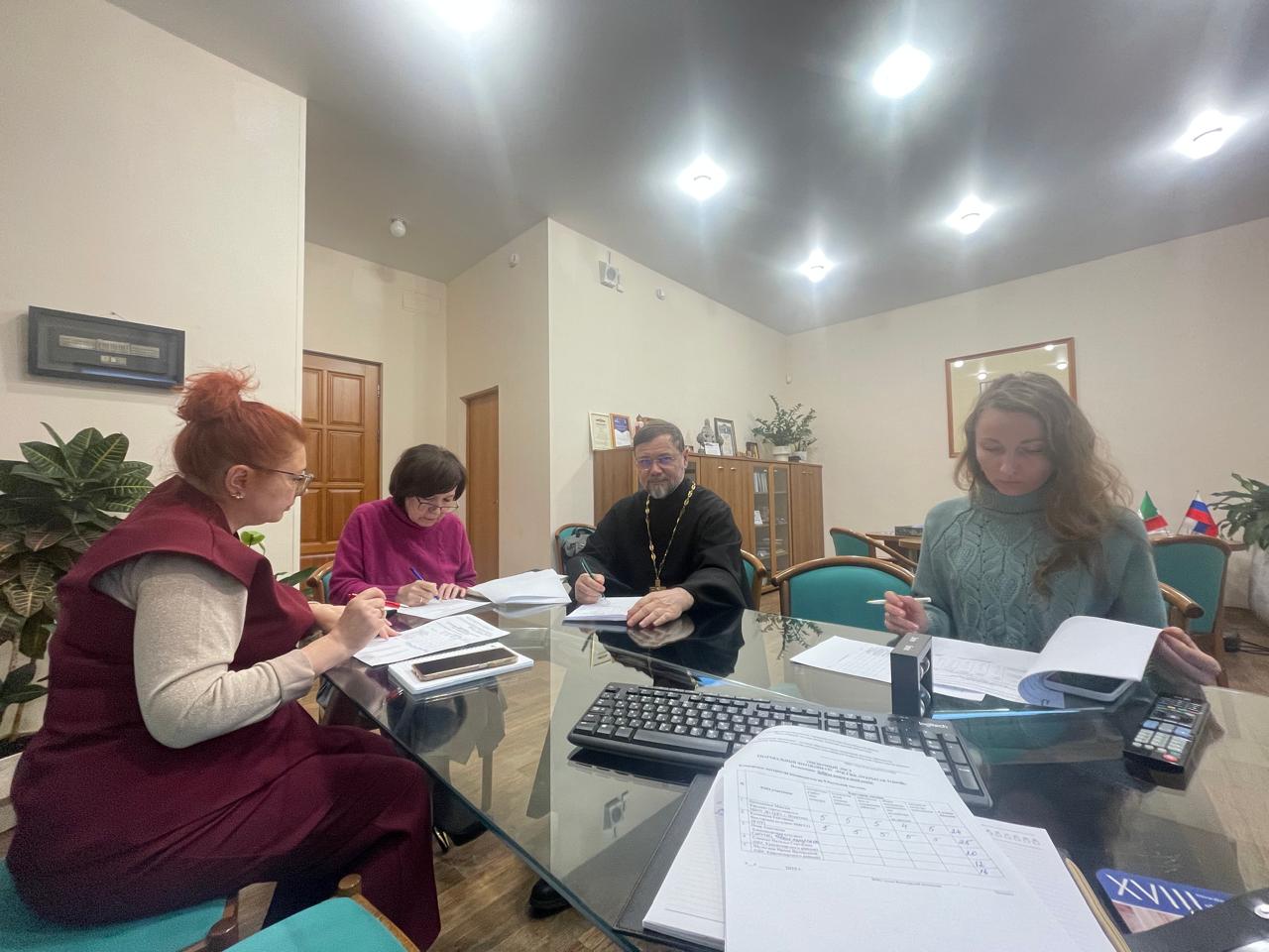Состав комиссии оценивал работы студентов, участвовавших в Епархиальном фотоконкурсе "Россия, открытая тобой."