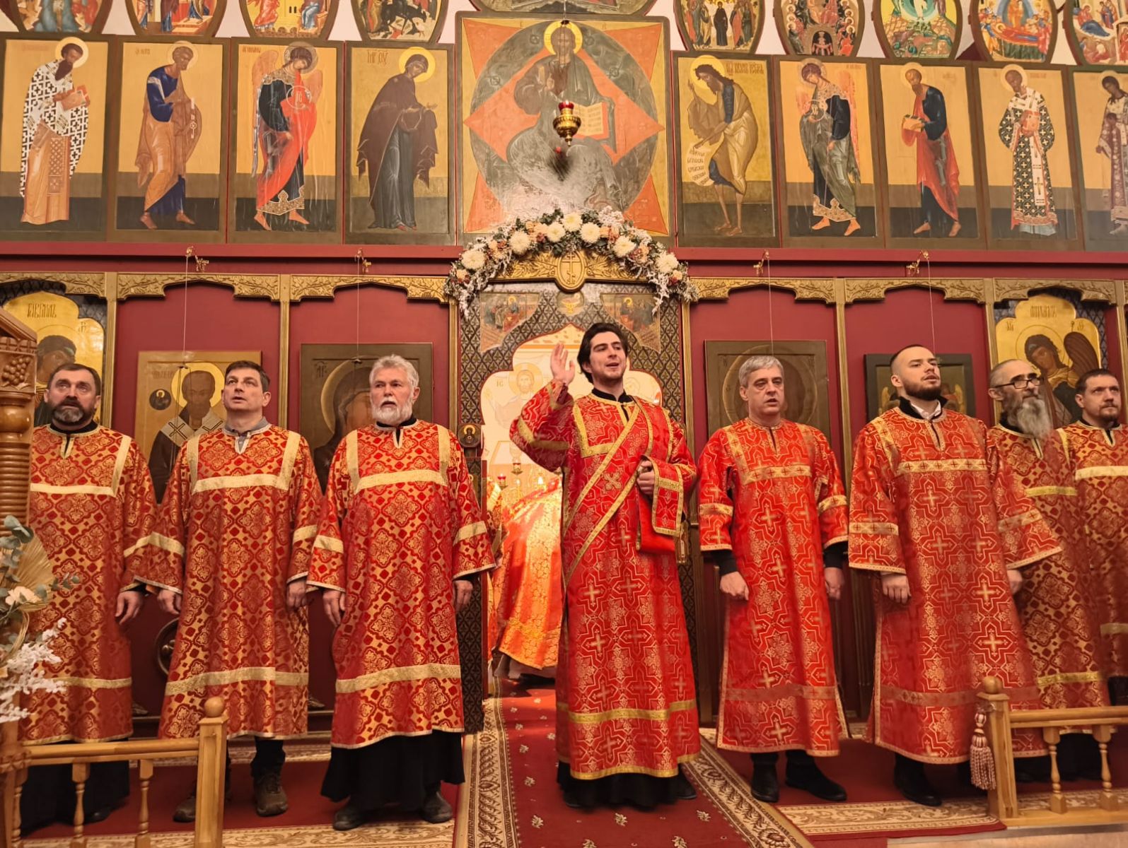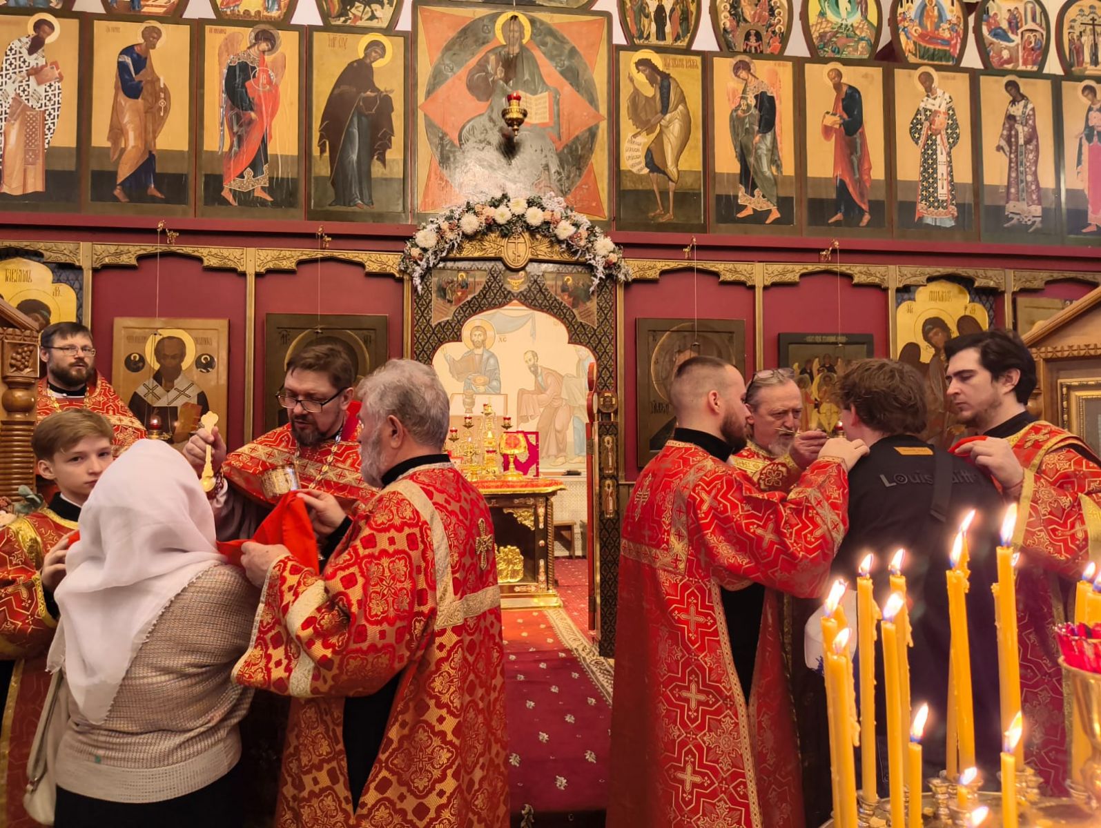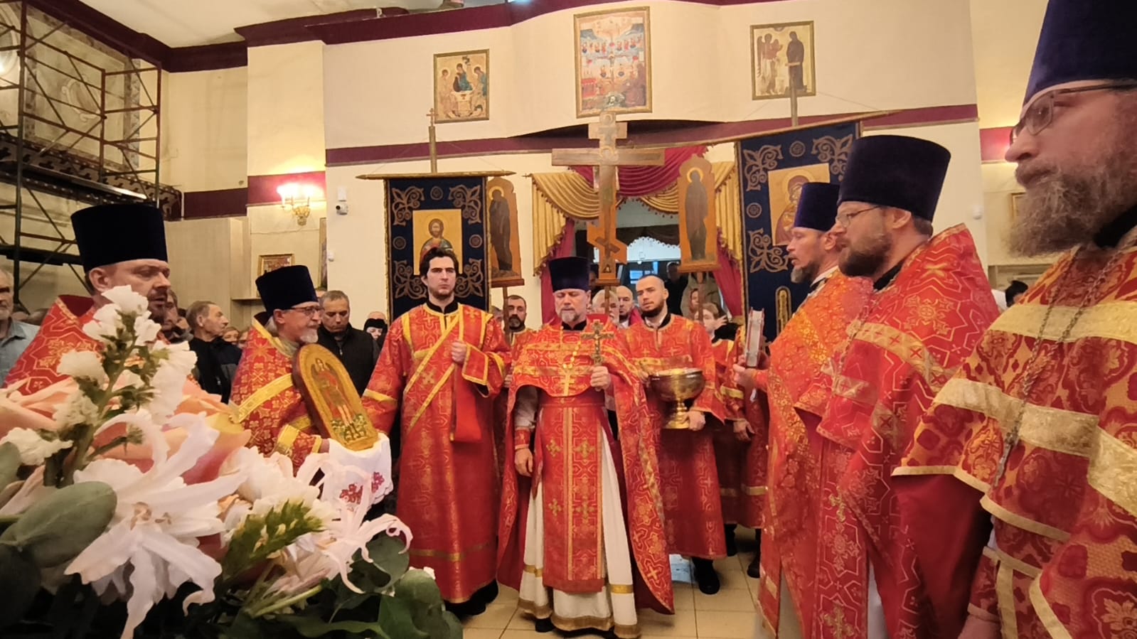 Божественную Литургию совершили настоятель храма, благочинный 2-го Градского благочиния иерей Игорь Морозов, настоятель прихода в честь иконы Божией Матери "Казанская" протоиерей Александр Патрин, благочинный 1-го Сельского благочиния протоиерей Павел Плотников, протоиерей Олег Просенков, протоиерей Василий Жилянин, иерей Роман Киселев, иерей Виталий Футорной, иерей Глеб Гаврилов и диакон Фёдор Москалюк.