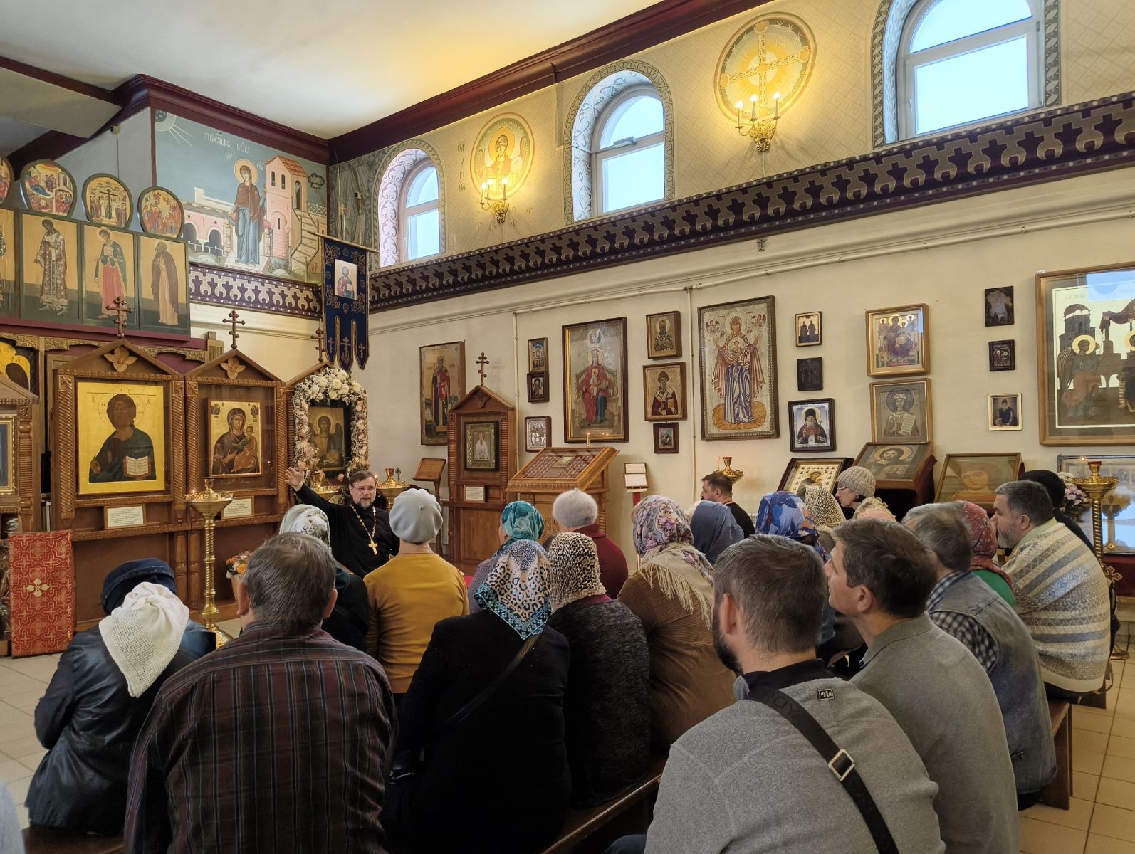 Настоятель храма отец Игорь рассказал о святом целовании и о целовании Иуды, наставил нас не быть Иудами, не дарить целований Иуды, не быть лицемерными, но относиться друг к другу с любовью.