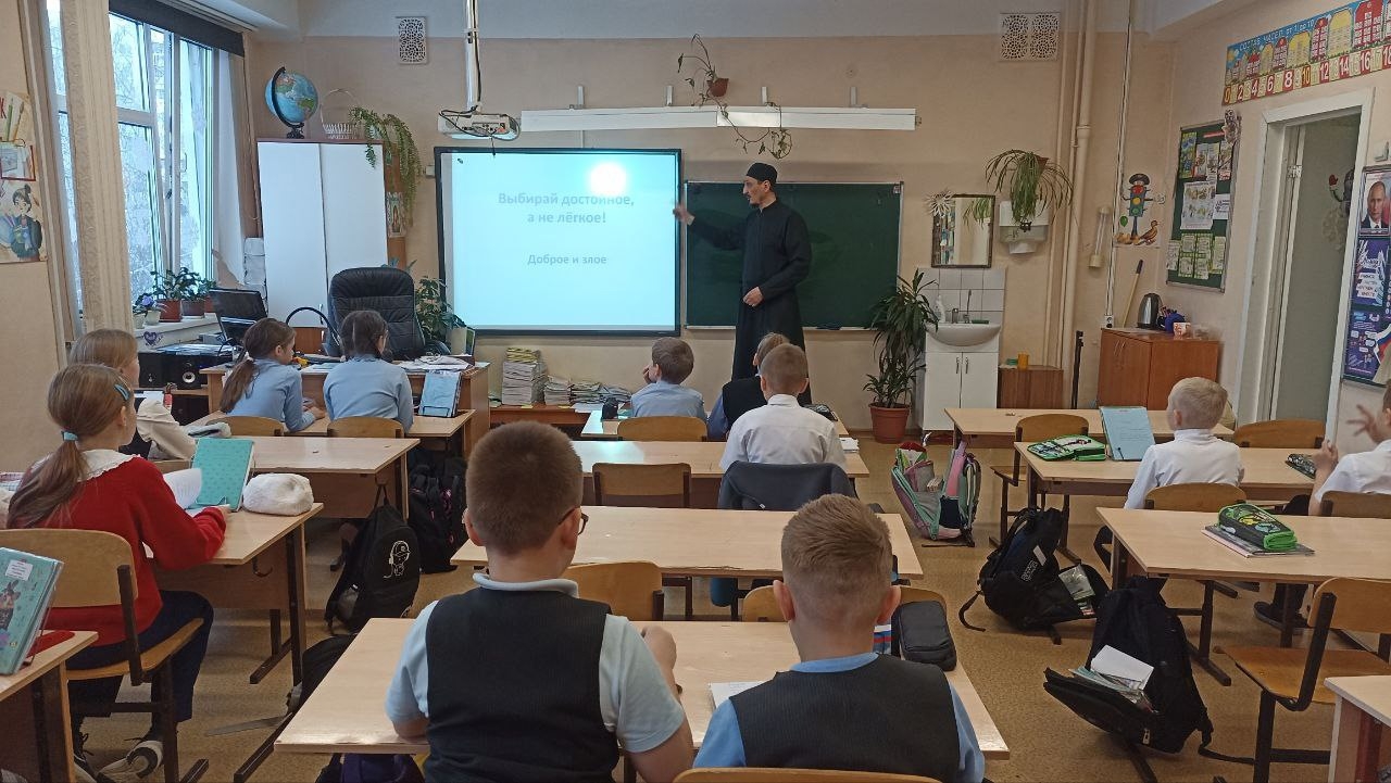 По благословению Благочинного 2 Градского благочиния катехизатор храма Михаила Архангела Алексей Евдокимов проводит уроки в 4-х классах СОШ № 206 Октябрьского района по предмету "Основы православной культуры".