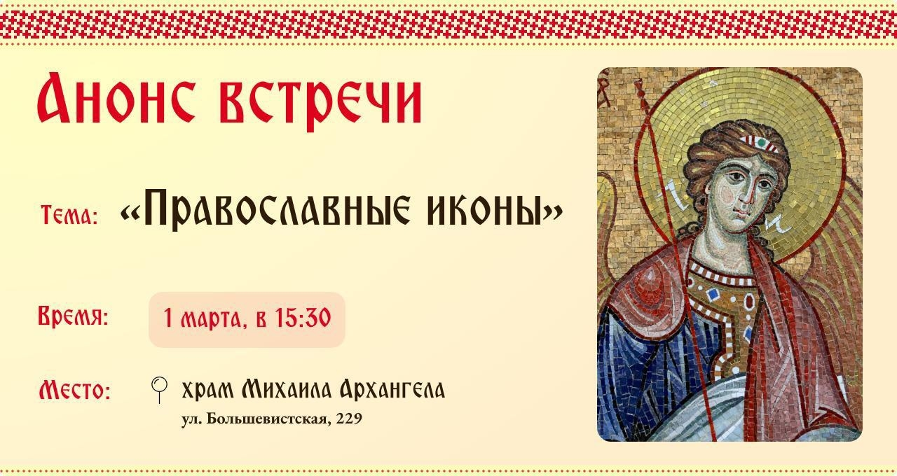 Следующая встреча молодёжного клуба состоится в воскресный день, в Неделю Торжества Православия - 1 марта, в 15:30 в храме во имя Михаила Архангела.