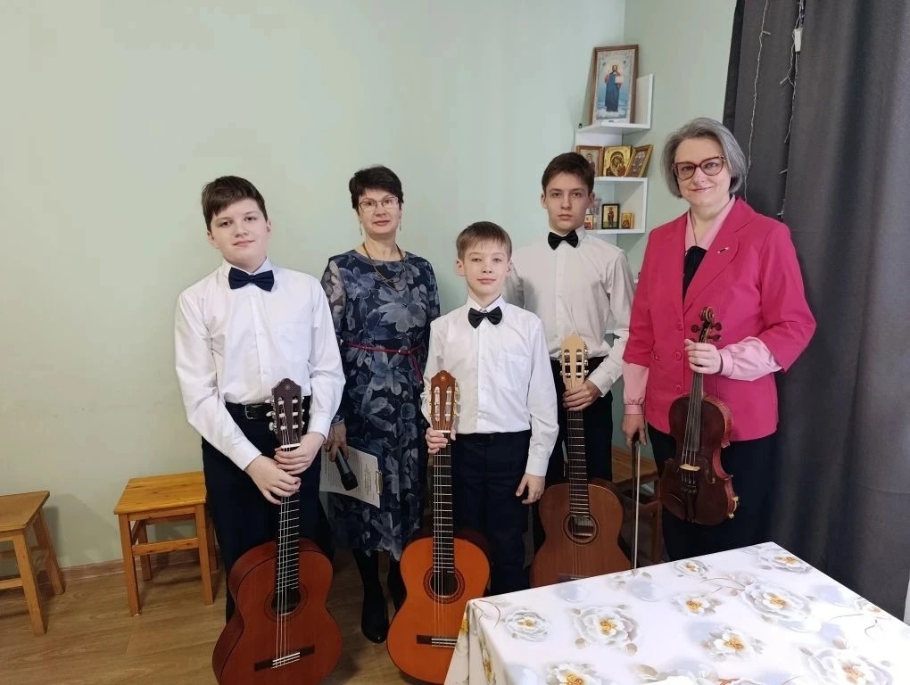 На концерте выступали учащиеся Детской школы искусств №12, класс преподавателя по гитаре Елены Валерьевны Ниловой и преподаватель по скрипке Татьяна Алексеевна Осипова, прозвучали произведения многожанровый музыки разных композиторов в сольном исполнении и в составе ансамбля гитаристов "Примавера".