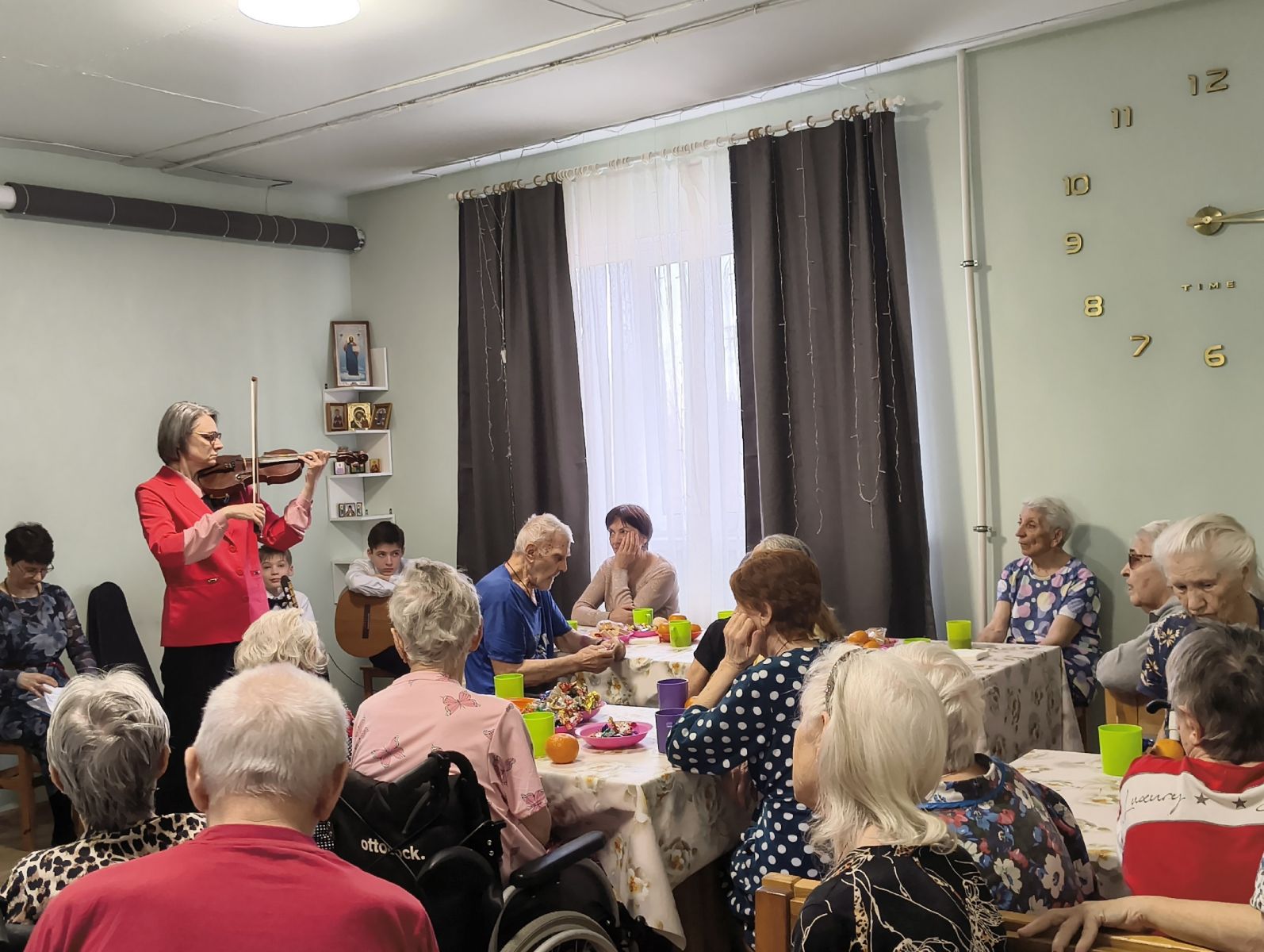 В пансионате для пожилых людей по благословению настоятеля храма отца Игоря Морозова, братья и сестры провели Пасхальный концерт и праздничное чаепитие.