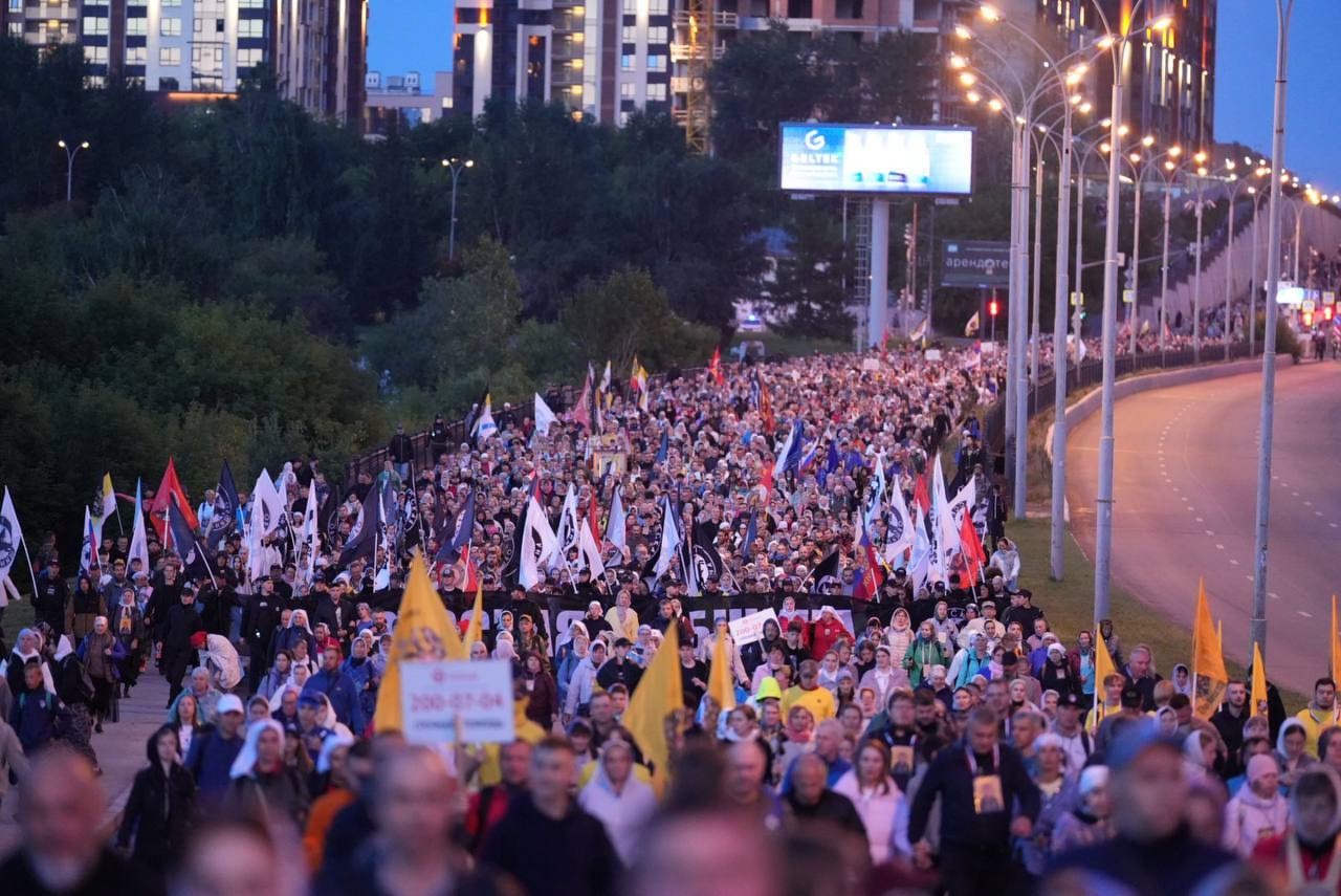 Более 40 000 человек приняли участие в ночной Божественной литургии и почти четырехчасовом Царском крестном ходе от Храма-на-Крови до Царской обители.