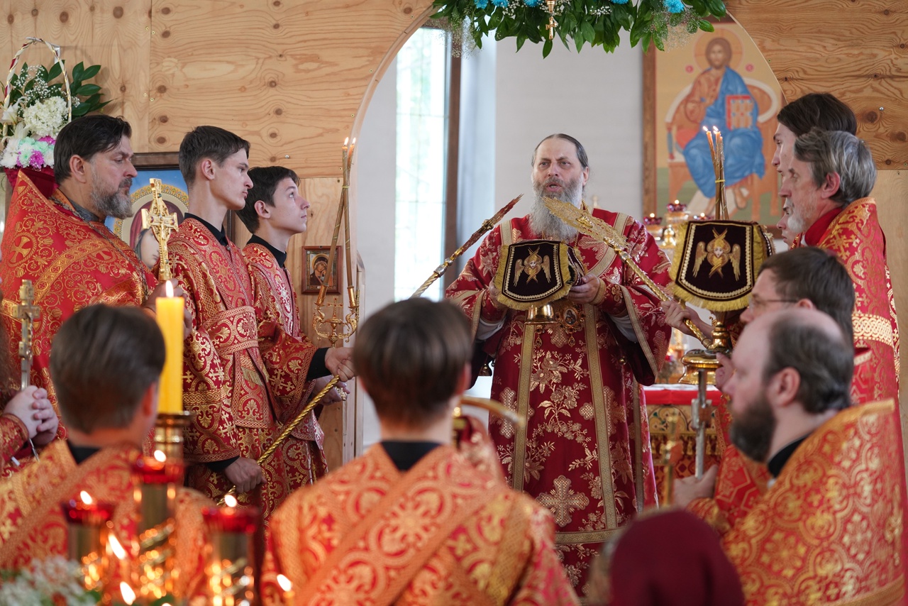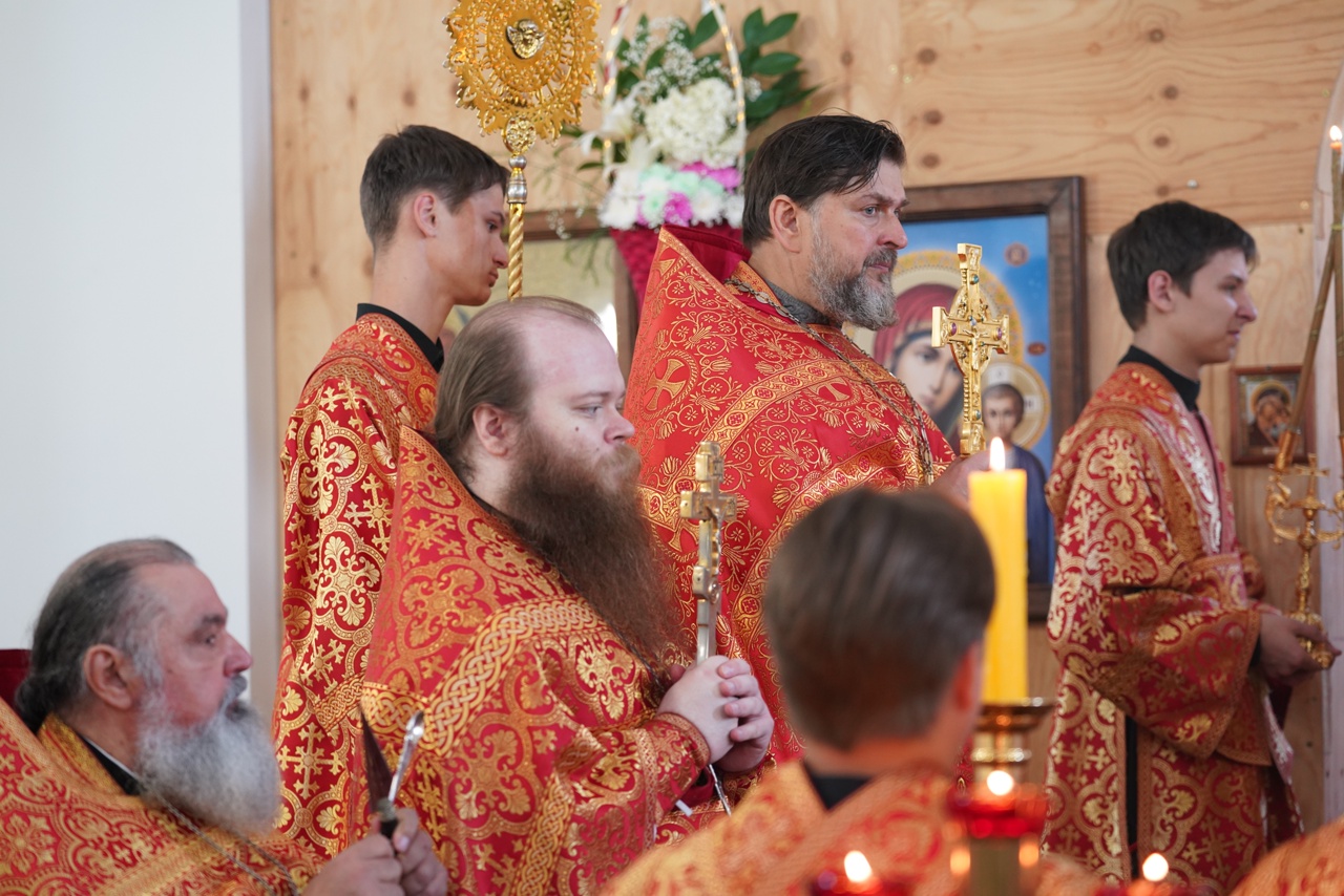 Сослужили Владыке благочинный 2-го Градского благочиния иерей Игорь Морозов и настоятель храма во имя страстотерпца Царя Николая отец Николай. В сугубую ектению были включены особые прошения о единении, затем архиерей прочитал молитву о Святой Руси. По окончании Богослужения в честь престольного праздника состоялся крестный ход. В своей проповеди владыка Никодим напомнил, насколько важным был подвиг святых царственных страстотерпцев и иже с ними пострадавших.