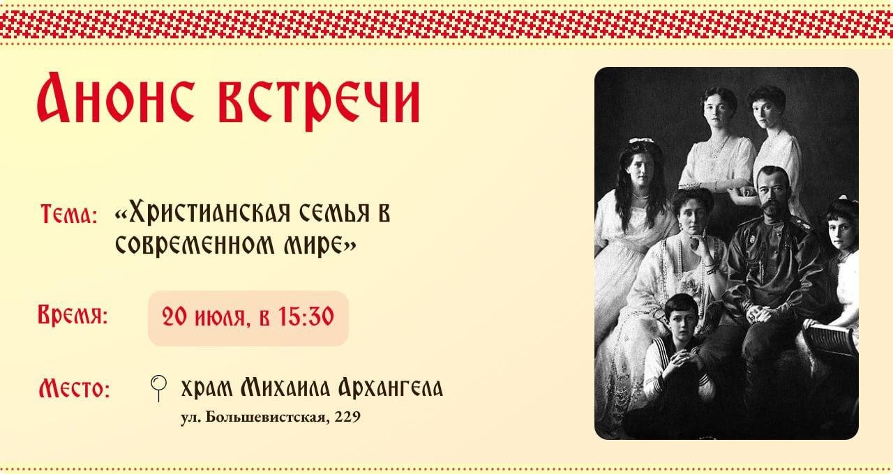 В это воскресенье, 20 июля, в 15:30 состоится следующая встреча молодёжного клуба "Благовест". Темой встречи будет "Христианская семья в современном мире", в продолжение празднования Дня любви, семьи и верности.