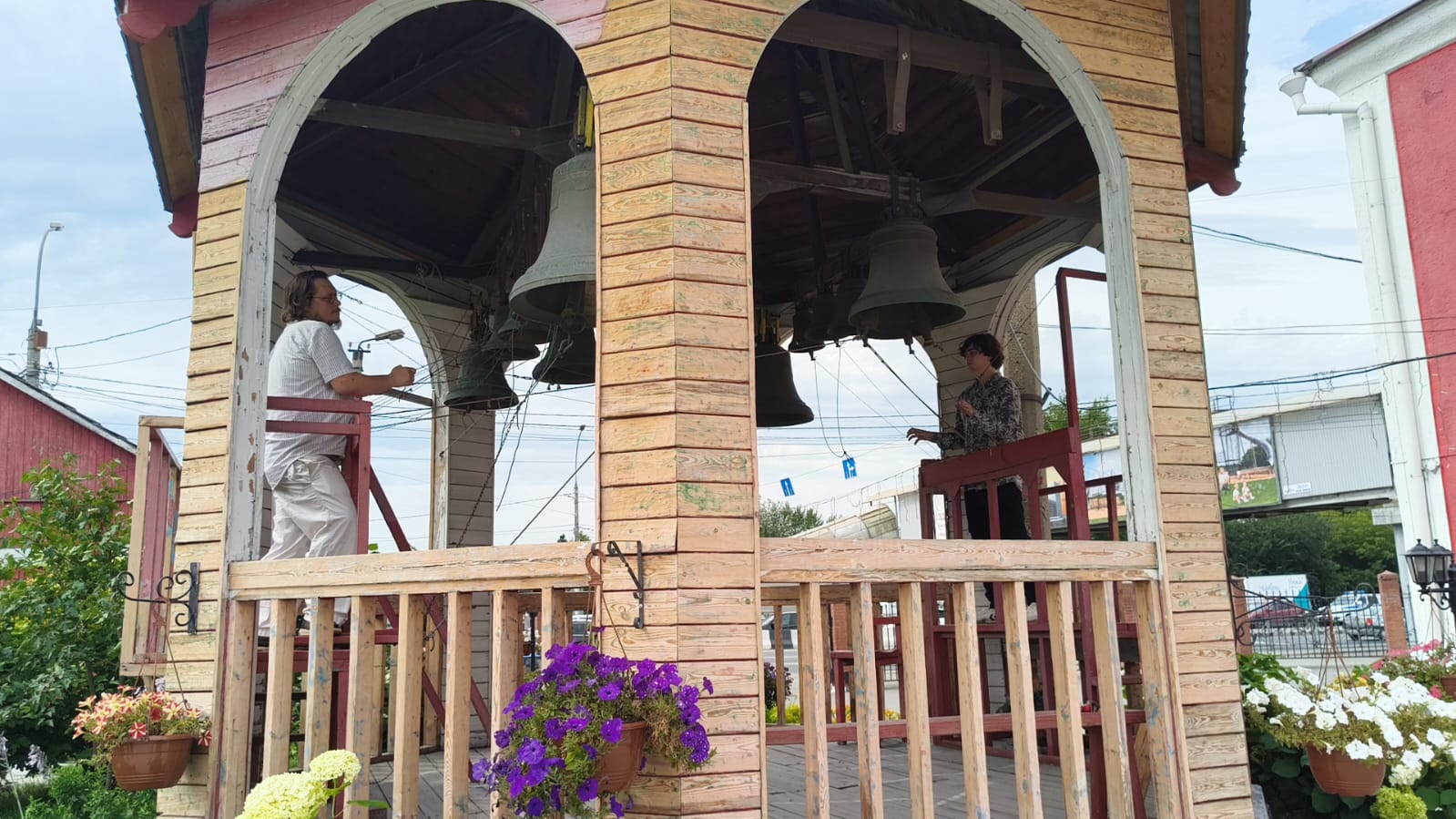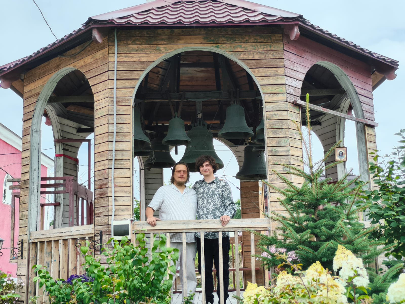В храме Михаила Архангела праздничный колокольный звон совершили руководитель Сибирского центра колокольного искусства Алексей Талашкин и пономарь Роман Федосеев.