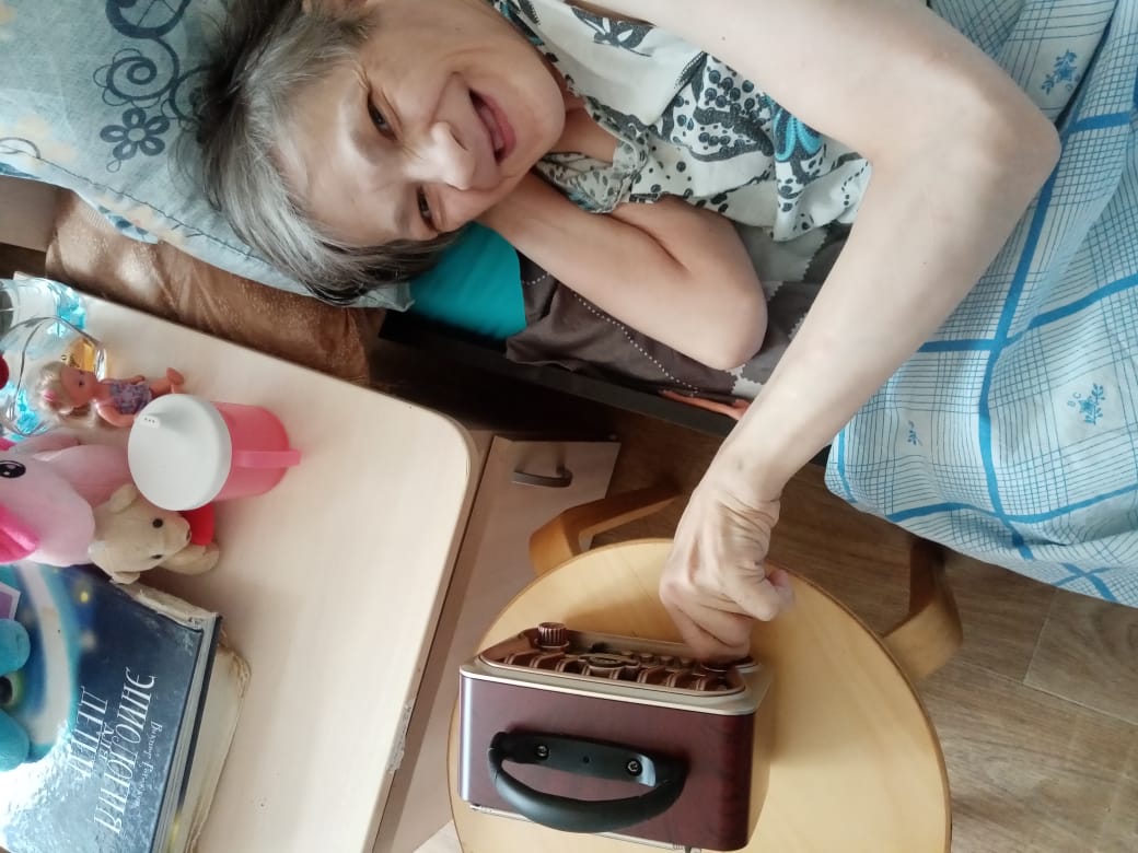 Представитель из Центра Адаптации Детей Инвалидов ЦАДИ подарил подопечной Олесе радиоприёмник.