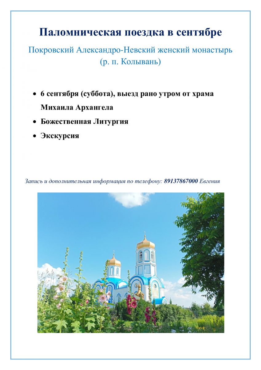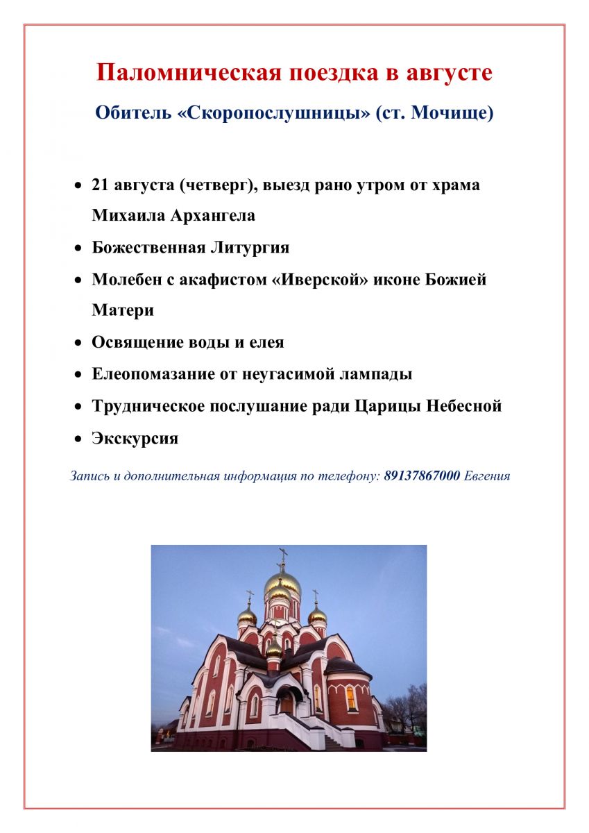 Анонс паломнических поездок от храма Михаила Архангела август-сентябрь.